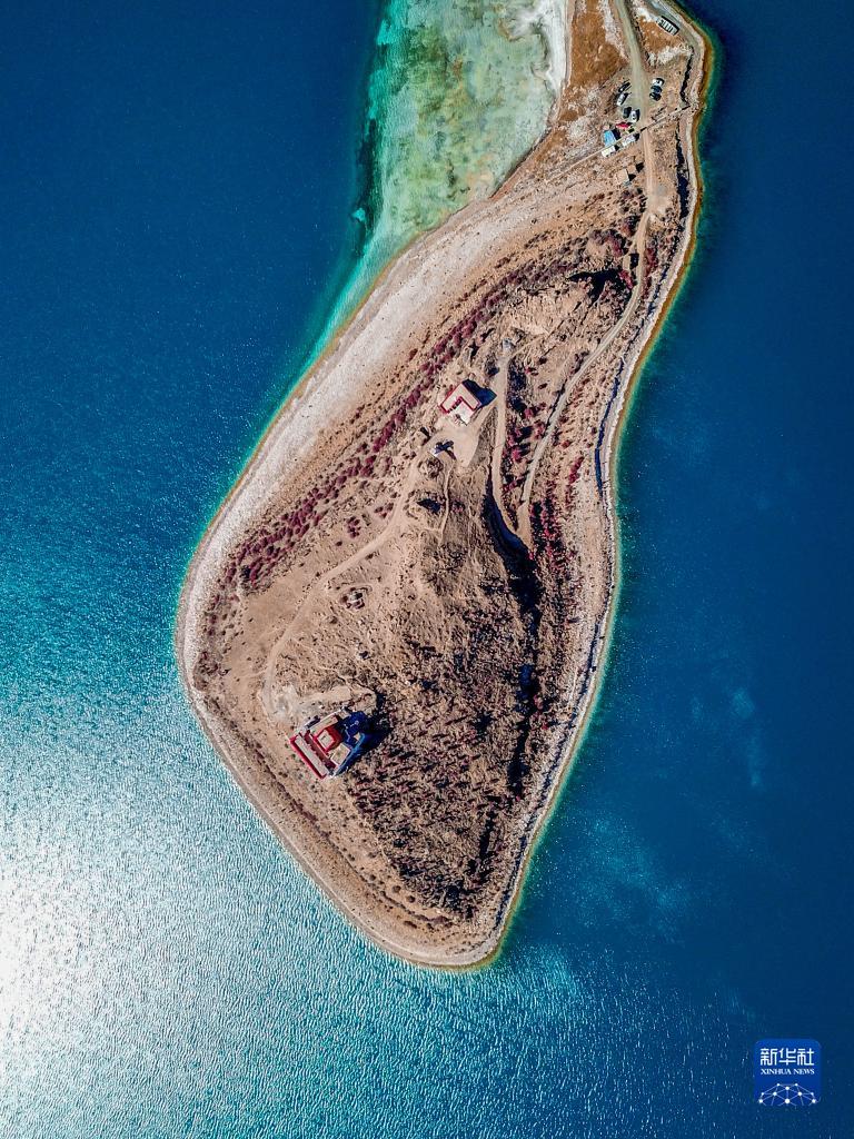 坐落于羊湖北岸一座半島上的日托寺(無人機照片,12月11日攝)。新華社記者 姜帆 攝