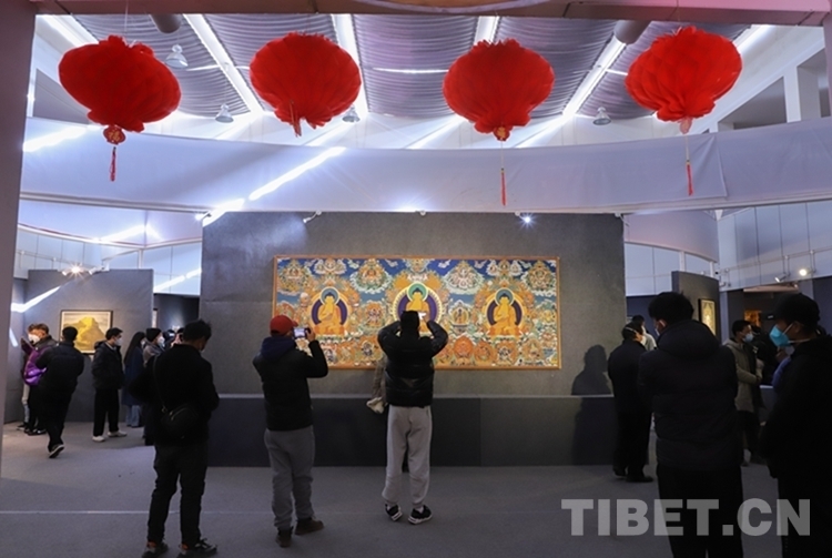 圖為第八屆“見(jiàn)即愿滿”西藏精品唐卡展開(kāi)幕式現(xiàn)場(chǎng)