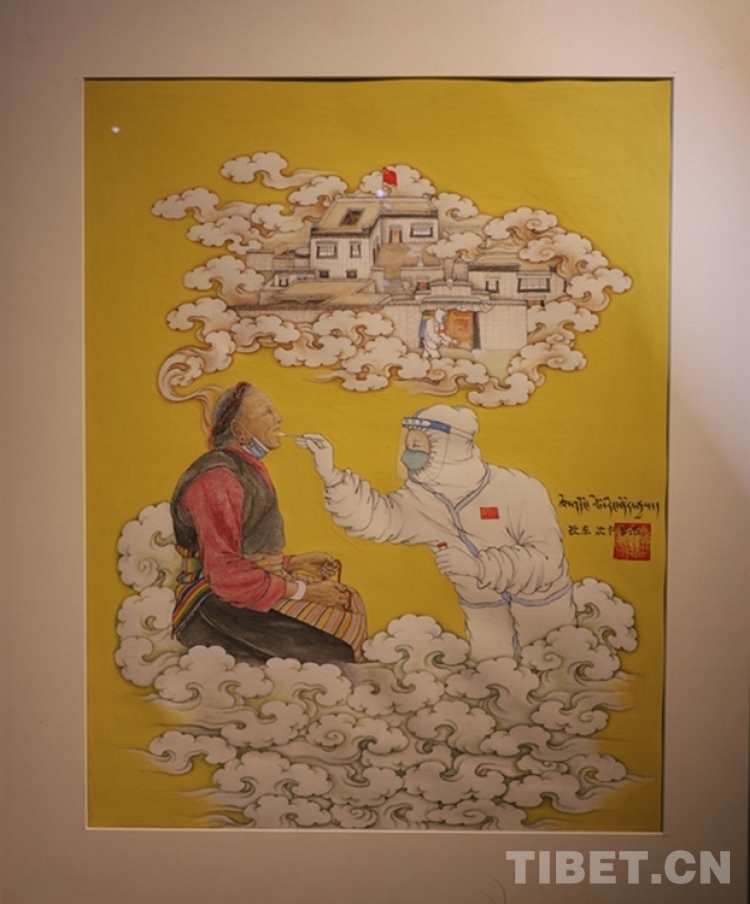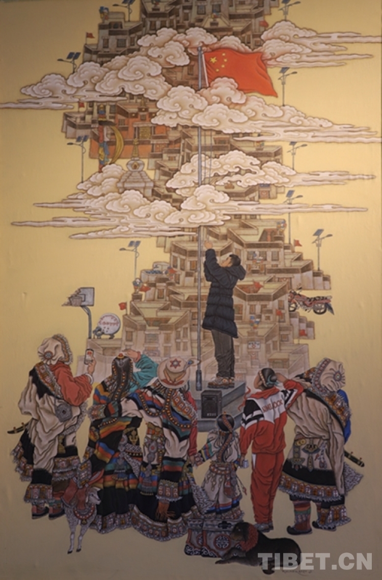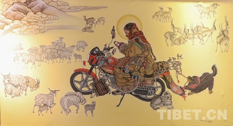 “畫(huà)家們?cè)谘永m(xù)深厚傳統(tǒng)文化,彰顯西藏唐卡繪畫(huà)高超技藝的同時(shí),不固守畫(huà)派風(fēng)格特色,用創(chuàng)新的方式聚焦偉大時(shí)代,描繪美好生活,歌頌西藏與祖國(guó)同行的盛世圖景?!蔽鞑刈灾螀^(qū)文聯(lián)副主席尹小林說(shuō)?! ?/p>