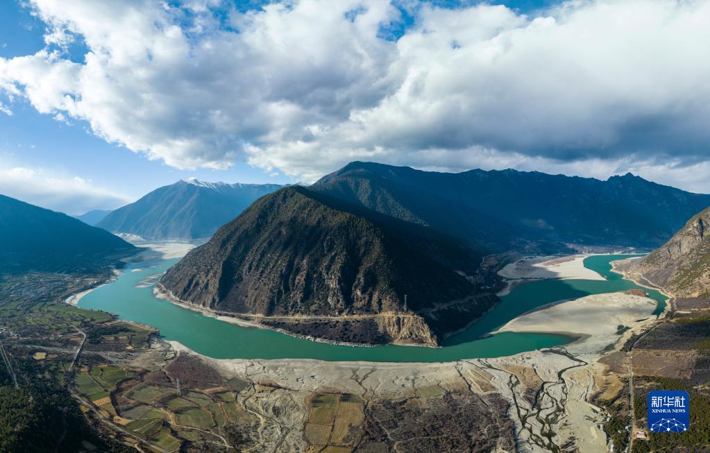 雅魯藏布大峽谷是世界上最深、最長、海拔最高的峽谷,雅魯藏布江沿大峽谷一路奔騰而下,站在德興大橋上往下看,江水環(huán)繞山頭形成的蛇形大拐彎,很像棒棒糖,故名。大拐彎蛇形環(huán)繞的綠色長廊中間山頭上有一片中國地圖形狀的農(nóng)田,既美麗又壯觀。一曲《天上的西藏》響徹大峽谷,我們盡情放聲歌唱、歡快舞蹈,無人機拍攝下了難忘的時刻、美麗的畫面。