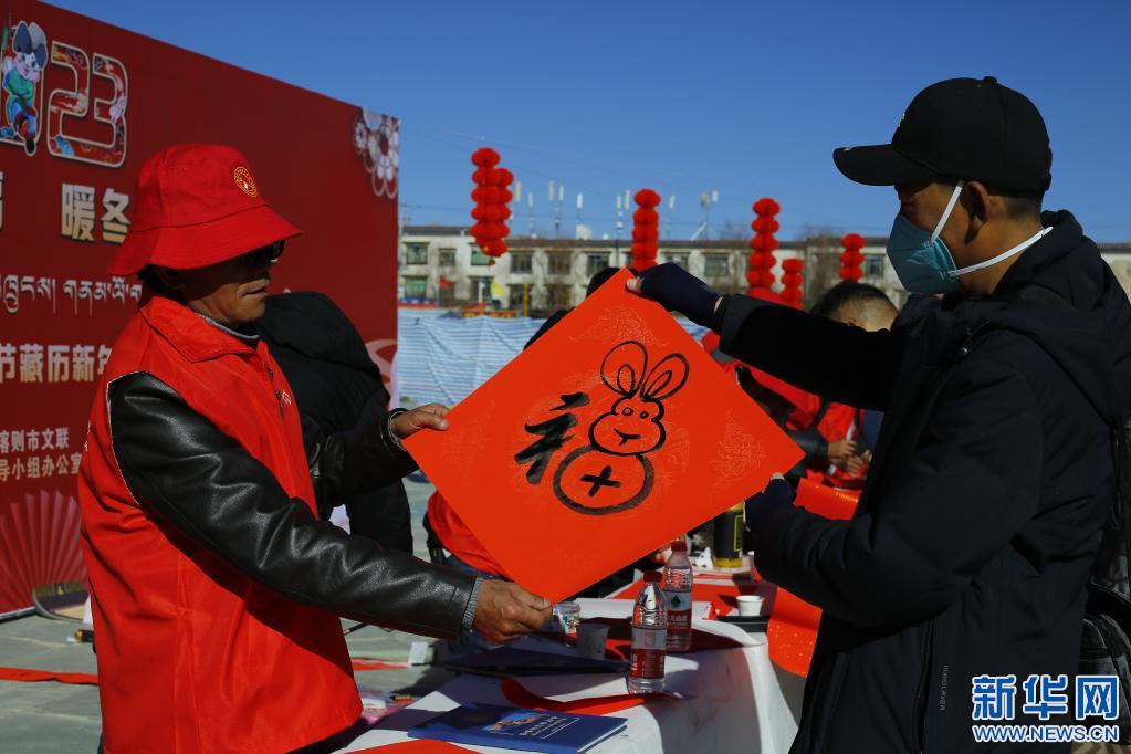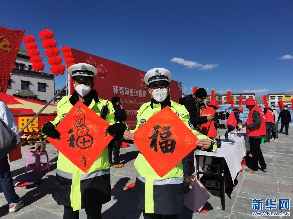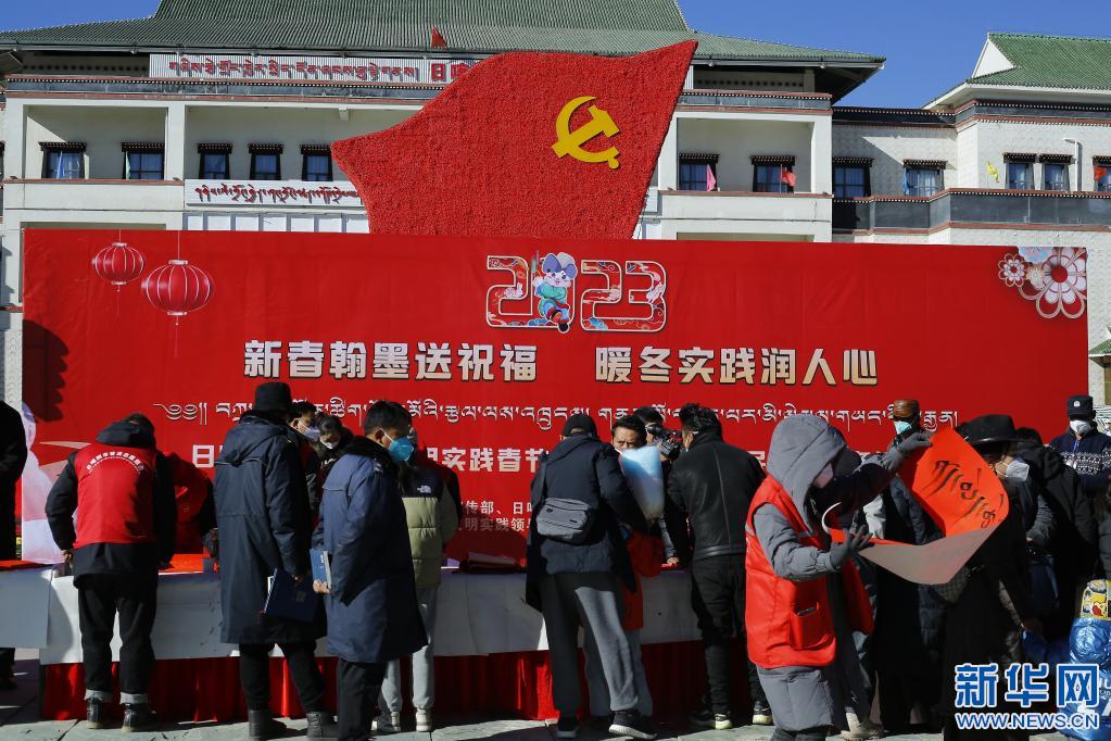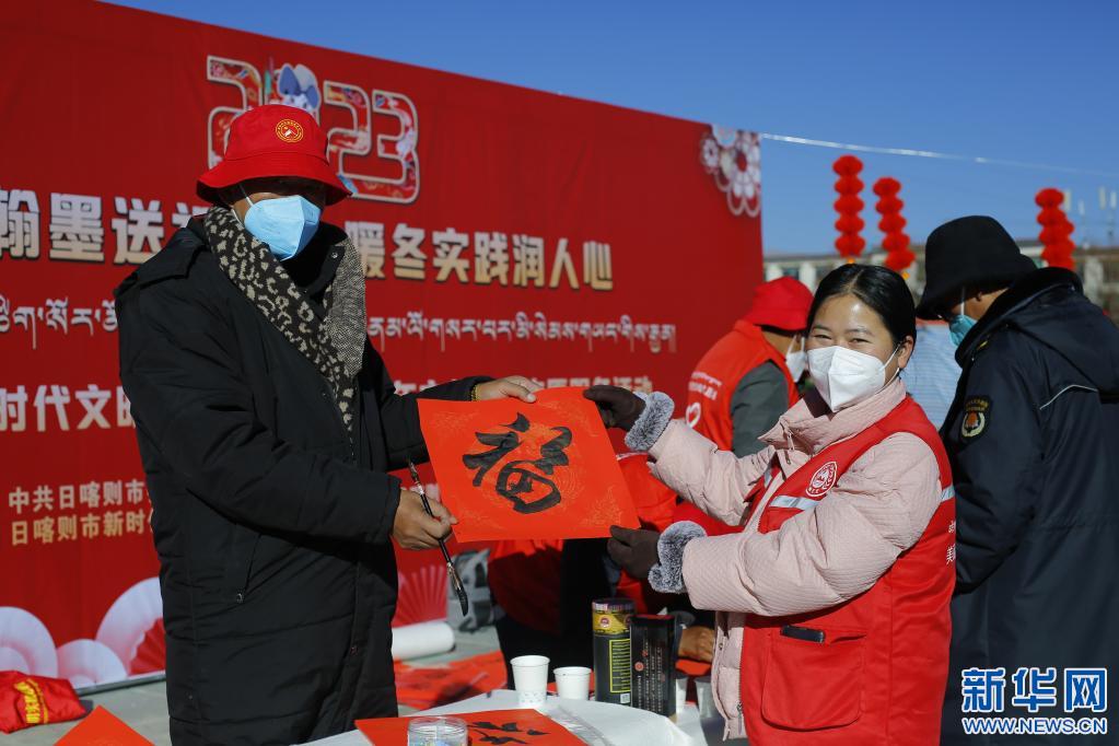 “新春翰墨送祝福 暖冬實踐潤人心”日喀則市新時代文明實踐2023年春節(jié)藏歷新年文藝惠民志愿服務(wù)活動,17日在日喀則市便民服務(wù)廣場舉辦。日喀則市文聯(lián)組織的11名文藝志愿者揮毫潑墨,免費(fèi)為現(xiàn)場群眾書寫藏漢文春聯(lián),為即將到來的春節(jié)和藏歷農(nóng)家年營造節(jié)日氛圍。