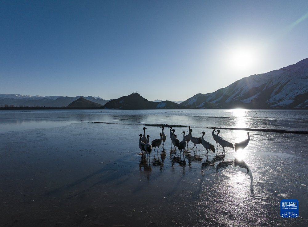 近日,西藏拉薩市各區(qū)縣迎來降雪。群山被白雪覆蓋,高原壯麗唯美。黑頸鶴、斑頭雁等翩躚起舞,拉薩河谷生機(jī)盎然。