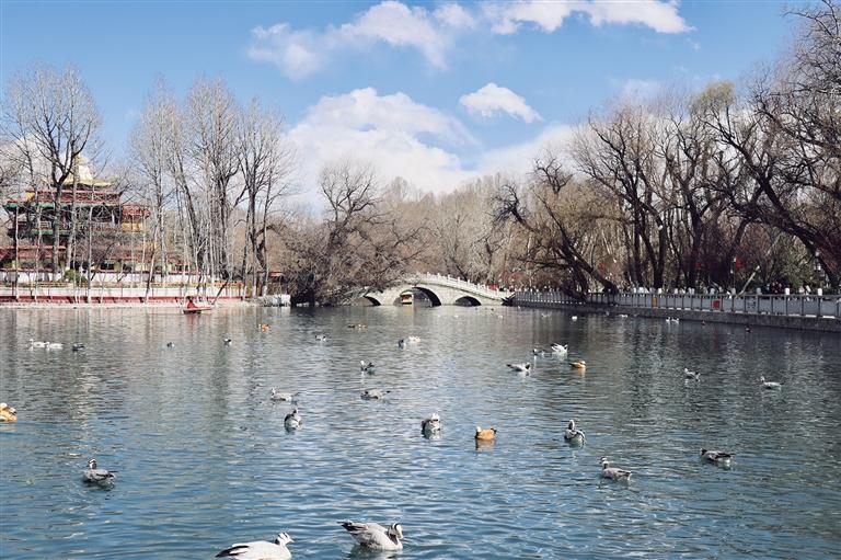 距離羅布林卡3.6公里的宗角祿康公園,位于布達(dá)拉宮的背后,同樣深受拉薩市民群眾的喜愛(ài),相較于羅布林卡,這里更為熱鬧。每到3月份,公園里的桃花、紅葉李、海棠競(jìng)相綻放,在湖水的映襯下顯得嬌俏動(dòng)人。公園內(nèi)每隔一段距離便有涼亭、長(zhǎng)椅供人們休息賞景,在這里,人們賞花、拍鳥(niǎo),格外熱鬧。