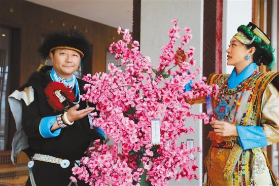 圖為推介會(huì)現(xiàn)場,工作人員對(duì)民族服飾進(jìn)行展示。記者 格桑倫珠 李梅英 攝