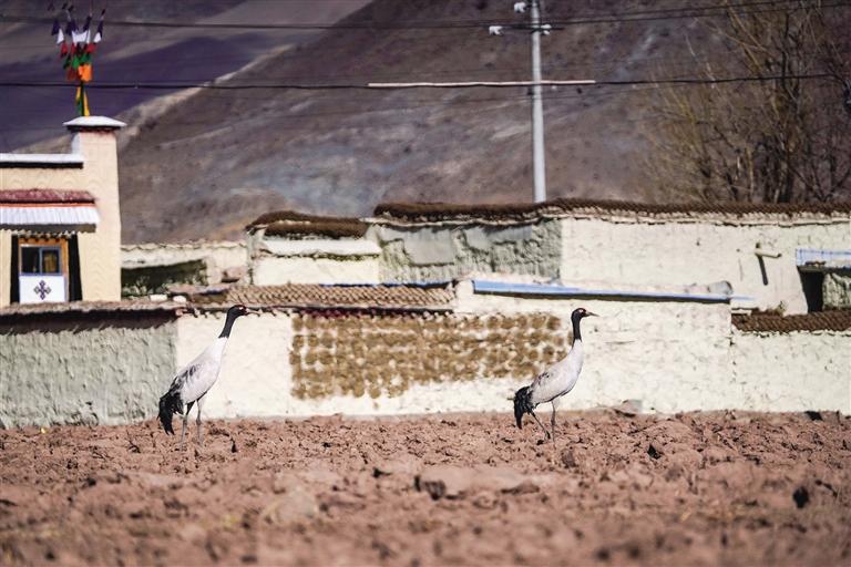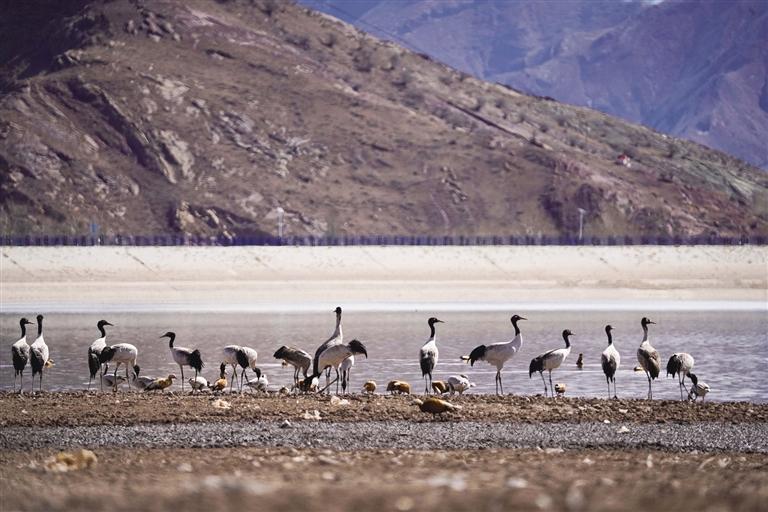 黑頸鶴是國(guó)家一級(jí)保護(hù)動(dòng)物,在藏語(yǔ)中稱(chēng)為“沖沖”。主要棲息在海拔2500米至5000米的高原、草甸、沼澤地帶。拉薩北部的林周縣平均海拔約4200米,是黑頸鶴的主要越冬地之一。最近這段時(shí)間,對(duì)拉薩市林周縣野保員們來(lái)說(shuō),一邊要忙自家的農(nóng)活,一邊還要巡查候鳥(niǎo)情況?!耙呀?jīng)有一小部分飛走了,估計(jì)再過(guò)半個(gè)月都會(huì)陸續(xù)飛走?!?月23日上午,野保員旦增告訴記者,在虎頭山水庫(kù)和卡孜水庫(kù)越冬的候鳥(niǎo)有一部分已經(jīng)飛走了。野保員口中的“飛走”便是遷徙,遷徙是候鳥(niǎo)的本能,一年一年,跟隨時(shí)間的召喚,完成兩次遷徙:繁殖和越冬。