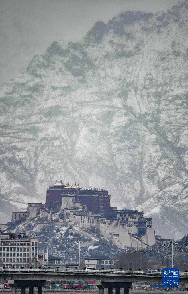 從拉薩南山公園拍攝的雪后布達(dá)拉宮(3月30日攝)。新華社記者 孫非 攝