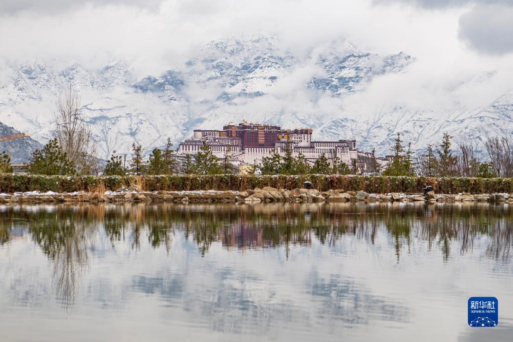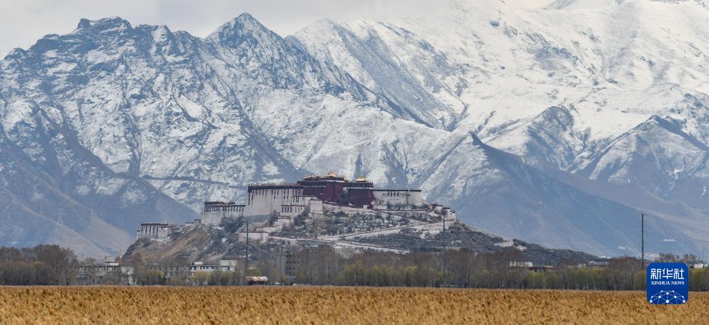 從拉魯濕地拍攝的雪后布達(dá)拉宮(3月30日攝)。新華社記者 晉美多吉 攝