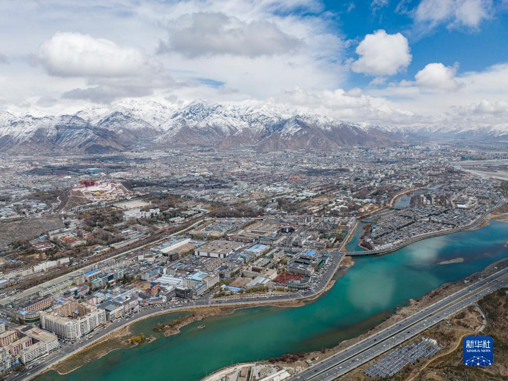 空中俯瞰拉薩雪景(3月30日攝,無人機(jī)照片)。新華社記者 孫非 攝