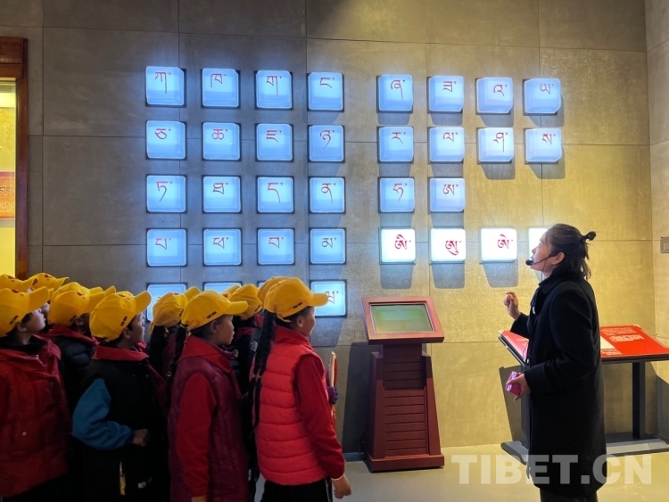 走進(jìn)“藏地智慧”,學(xué)生們一眼認(rèn)出藏文創(chuàng)始人吞彌·桑布扎,大家異口同聲回答講解員的問題說:“這是吞彌·桑布扎?!钡玫街v解員的肯定、并向他們講述背后的相關(guān)歷史后,學(xué)生們聽得很入迷,也更有信心面對(duì)接下來的問題。藏文的信息化使得這一古老文字煥發(fā)著全新而旺盛的生命力,在這里學(xué)生們欣賞藏文在智能手機(jī)、電腦、多功能點(diǎn)讀機(jī)等智能電子設(shè)備內(nèi)“走動(dòng)”、傳統(tǒng)農(nóng)牧業(yè)的模擬場景和現(xiàn)代化的機(jī)械設(shè)備圖、藏醫(yī)藥材、藏香藏紙制造和制鹽過程等獨(dú)具特色的藏族傳統(tǒng)手工藝,也能很好的回答講解員提出的問題,現(xiàn)場互動(dòng)氣氛熱烈?!斑@種活動(dòng)我們學(xué)校不會(huì)常有,當(dāng)孩子們聽到要去拉薩時(shí)像是要過年那樣高興,一路上問這問那地充滿好奇?!倍喟奏l(xiāng)小學(xué)的帶隊(duì)老師羅珍介紹:“這次參加活動(dòng)的這些學(xué)生都是三、四、五年級(jí)的學(xué)生,個(gè)個(gè)品學(xué)兼優(yōu)?!?/p>