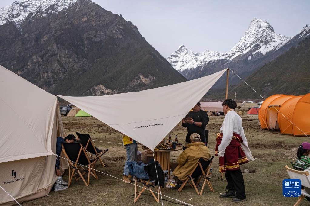 4月15日,游客在巴松措附近體驗露營生活。新華社記者 黃耀漫 攝