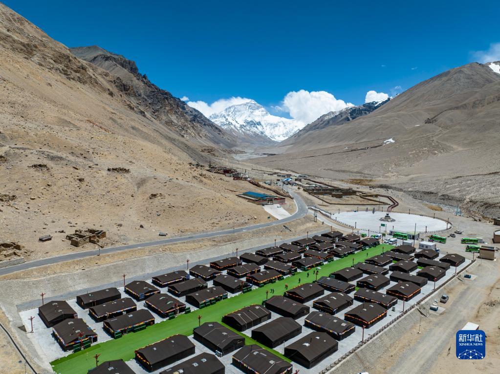 這是珠峰游客大本營的帳篷旅館(5月20日攝,無人機照片)。新華社記者 孫非 攝