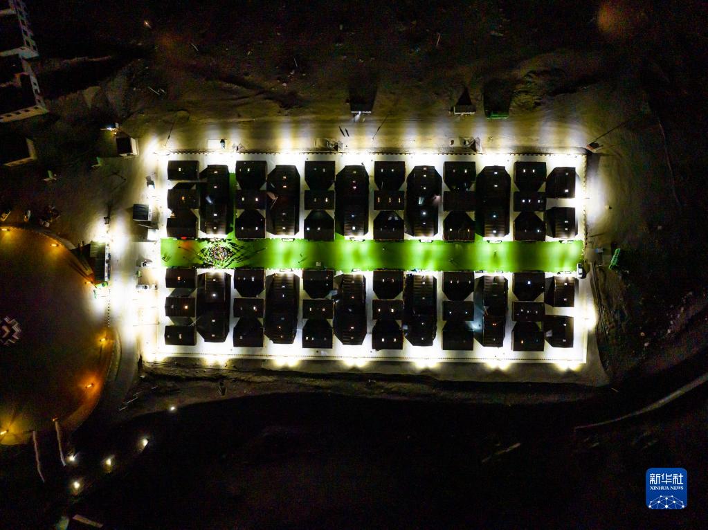 這是夜晚的珠峰游客大本營帳篷旅館(5月16日攝,無人機照片)。新華社記者 孫非 攝