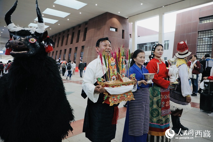 5月31日晚,隨著火車的抵達,來自北京的500名游客乘坐 “心連心 京藏號”援藏旅游專列抵達西藏拉薩。