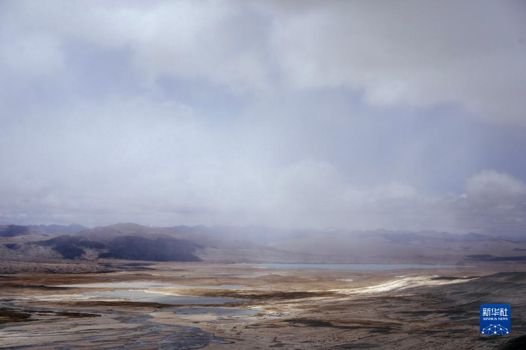 杰瑪央宗冰川融化后形成的河床(5月31日攝,無人機(jī)照片)。新華社記者 晉美多吉 攝