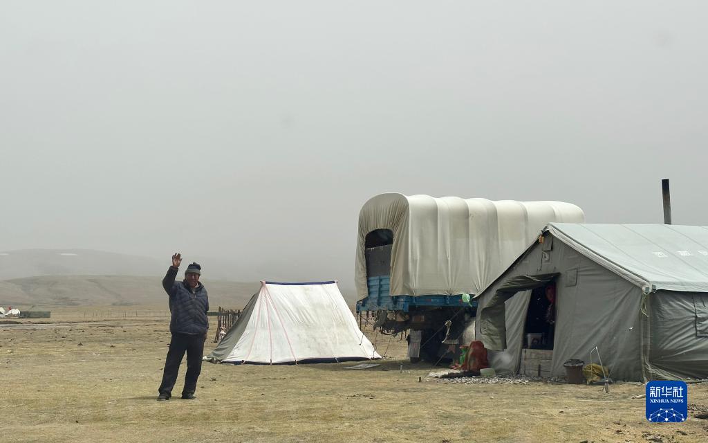 “國道之行 從雪山奔向大?!眻?bào)道組沿著219國道繼續(xù)向南,進(jìn)入仲巴縣境內(nèi),隨后,記者離開國道,拐入一條由碎石鋪成的簡易道路。繼續(xù)行駛近百公里后,草原上出現(xiàn)了數(shù)頂帳篷——這是一個(gè)牧民的放牧點(diǎn)。