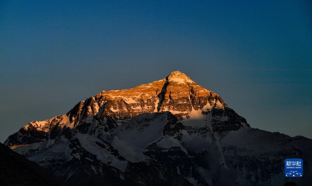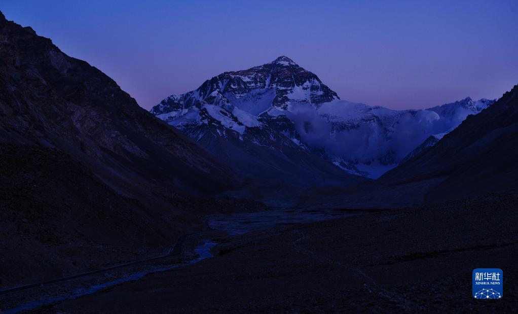 6月4日拍攝的太陽(yáng)完全落山之后的珠峰。新華社記者 費(fèi)茂華 攝