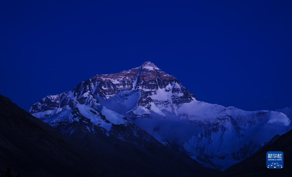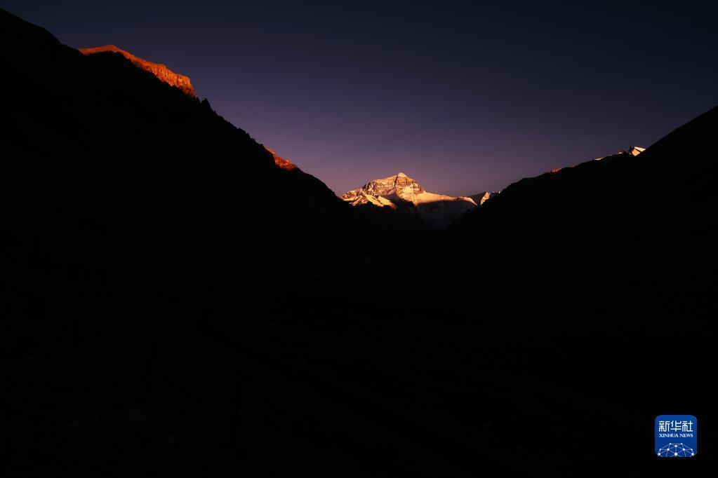 6月4日,最后一抹陽(yáng)光即將從珠峰頂上消逝。新華社記者 費(fèi)茂華 攝