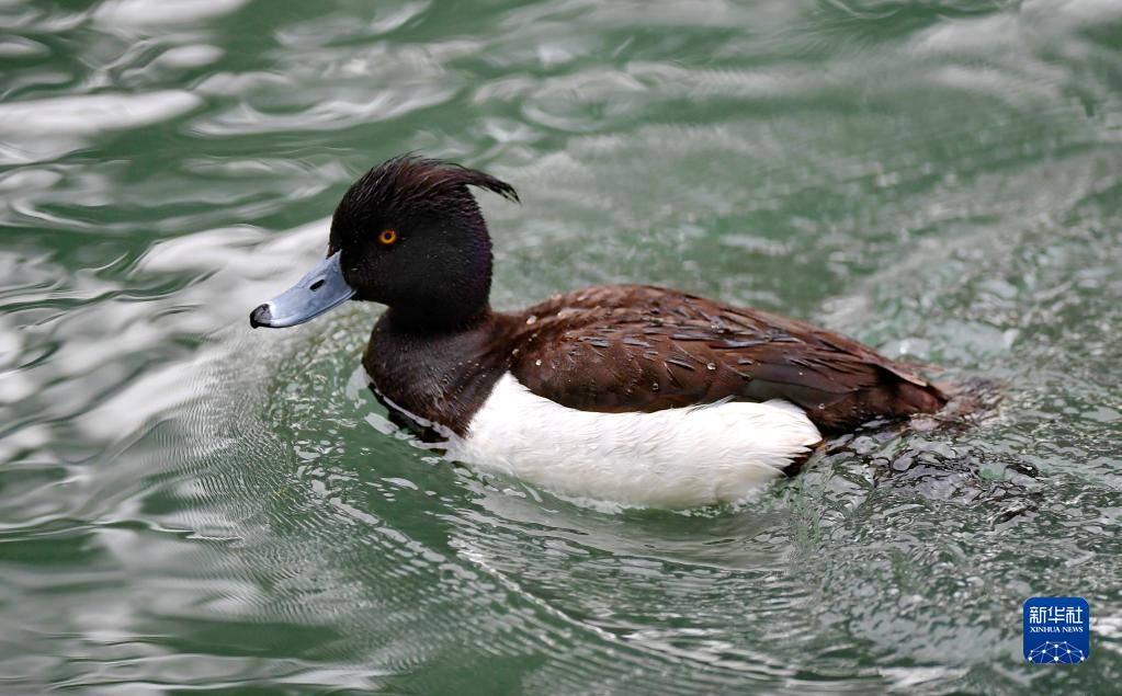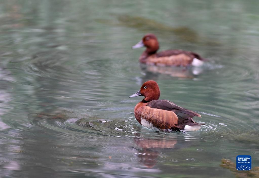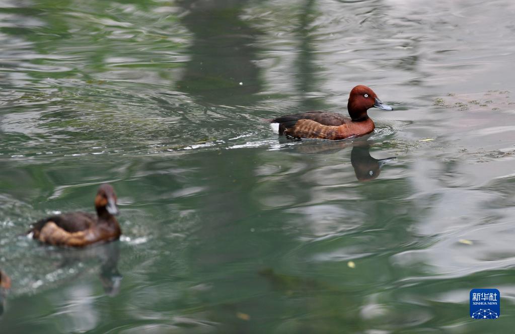 夏日里,白眼潛鴨和鳳頭潛鴨在西藏拉薩市拉魯濕地國(guó)家級(jí)自然保護(hù)區(qū)中干渠里覓食、嬉戲。