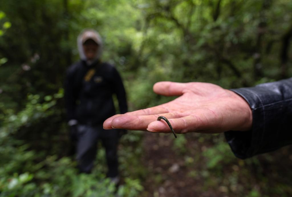 6月15日上午,“國道之行 從雪山奔向大?!眻蟮澜M在波密縣林草局工作人員西繞的帶領(lǐng)下,開啟了尋找亞洲第一高樹的旅程。西繞此前已經(jīng)三次到達(dá)過亞洲第一高樹所在地,對路線非常熟悉。前一天他提醒我們,這一路翻山越嶺非常不好走,而且原始森林中螞蟥很多,更有可能遇到蛇。波密縣林草局副局長尼瑪次仁也囑咐我們要注意安全。因為生態(tài)保護(hù)得好,林芝地區(qū)最近幾年野生動物的數(shù)量和種類都大幅增加,森林中不僅有金錢豹、云豹、猞猁,更出現(xiàn)了雪豹的蹤跡?!靶埽绕涫切?,特別多!”尼瑪次仁對我們說。
