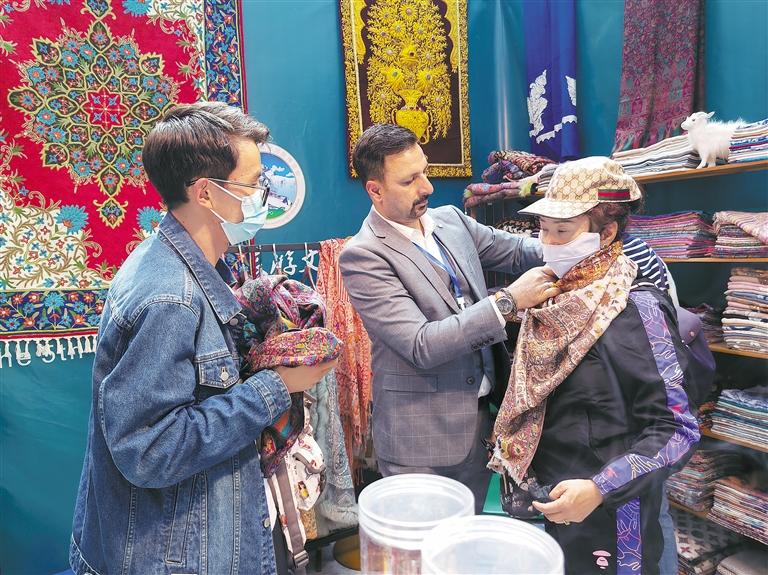 尼泊爾木碗、伊朗波斯地毯、巴基斯坦玉石……在2號(hào)館的國(guó)際精品展區(qū),每一個(gè)國(guó)家的展臺(tái)前都擠滿了熱情的市民?!耙恢倍己芟矚g伊朗的地毯,這次終于買到了,在藏博會(huì)買更便宜,真的很開心?!崩_居民扎西告訴記者。