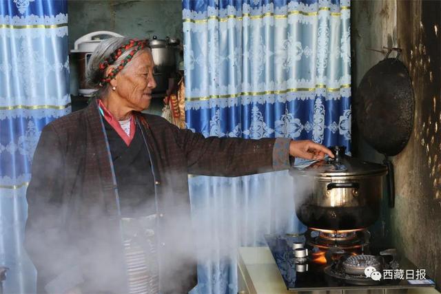 圖為山南市貢嘎縣杰德秀鎮(zhèn)果吉村村民在使用新式高壓鍋時(shí),單手撥動(dòng)鍋蓋上的泄壓閥排放鍋里的氣體。圖片來(lái)源于西藏日?qǐng)?bào)