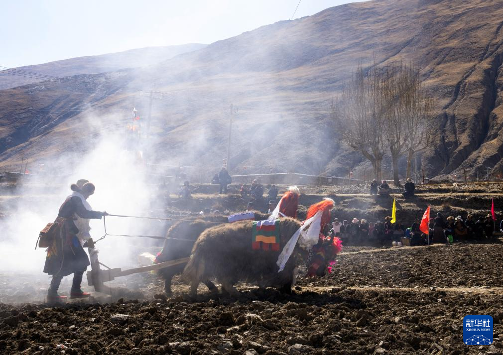 這是3月16日拍攝的西藏山南市瓊結(jié)縣加麻鄉(xiāng)加麻村的春耕儀式現(xiàn)場(chǎng)。新華社記者 旦增尼瑪曲珠 攝 ??