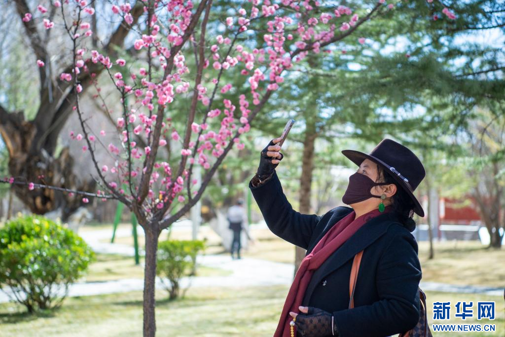 3月15日,群眾在宗角祿康公園賞花、拍照。新華網 旦增努布 攝