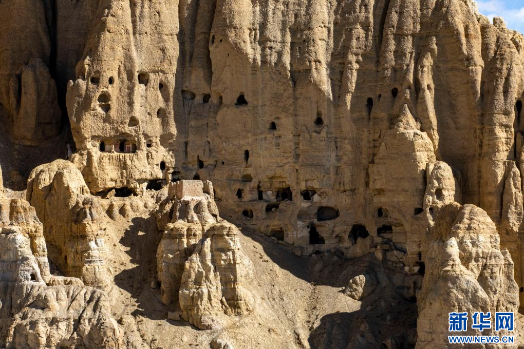 達巴遺址位于西藏阿里地區(qū)札達縣境內(nèi),其主要建筑分布在兩座山脊之上,整個遺址共有洞穴200余處,且有獨立的碉樓、寺廟建筑遺跡、居民窯洞等建筑,在白雪的映襯下,顯得格外雄渾而神秘。