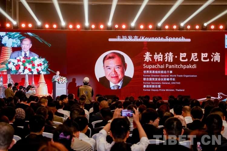 圖為世界貿易組織前總干事素帕猜·巴尼巴滴在活動現場。