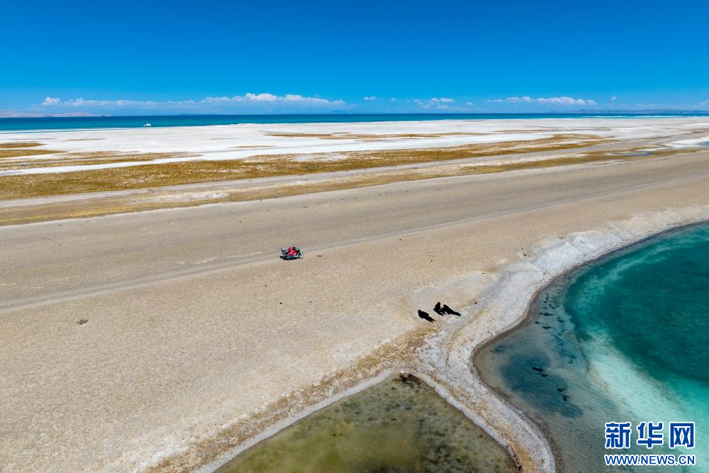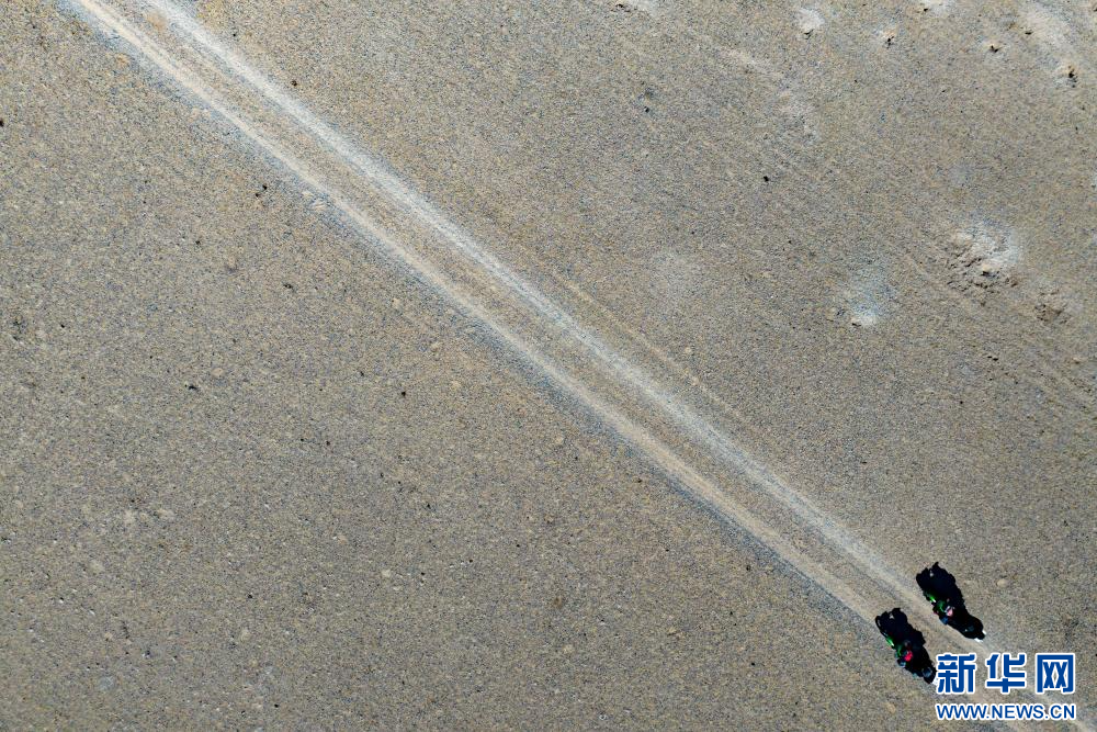 4月14日,野保員在色林錯國家級自然保護區(qū)進行日常巡邏(無人機照片)。新華網 旦增努布 攝