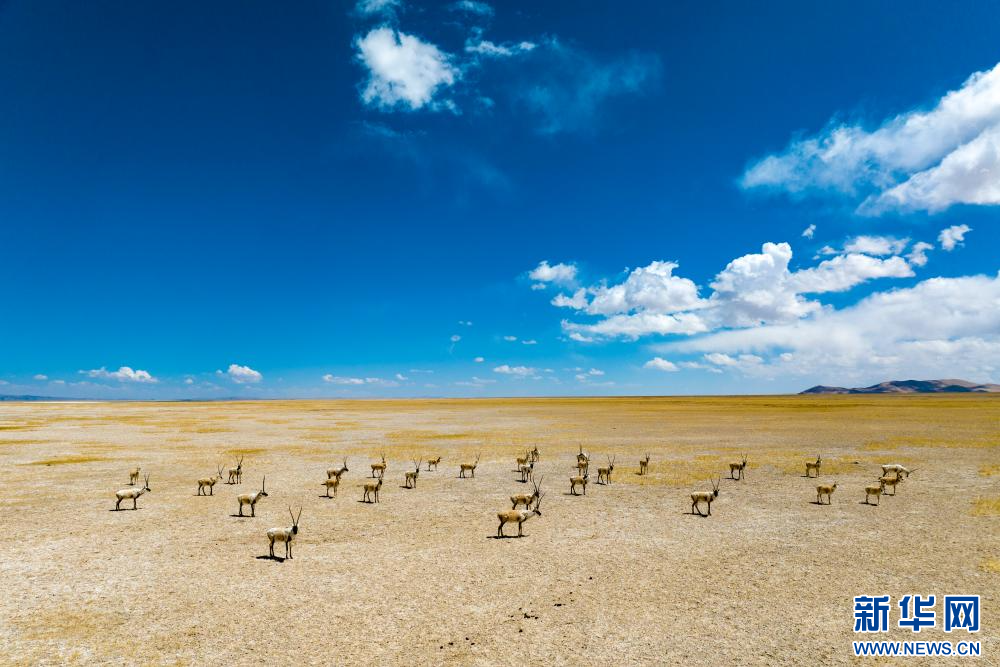 4月14日,在色林錯國家級自然保護區(qū)拍攝的藏羚羊。新華網 旦增努布 攝