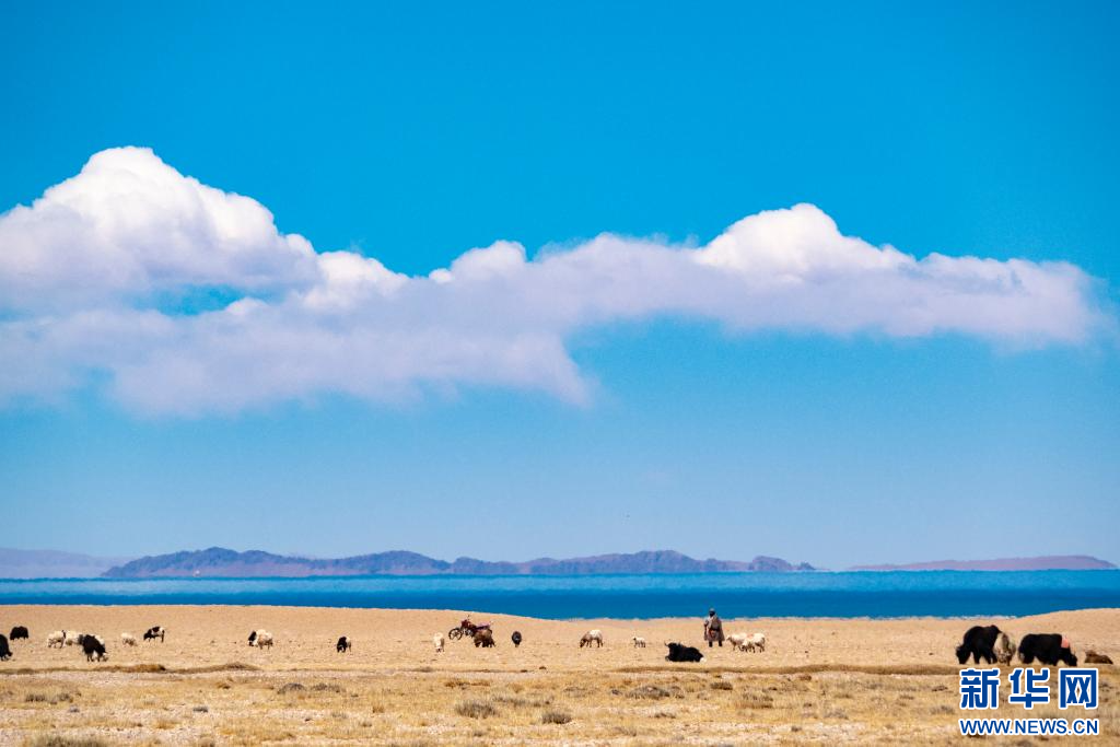 4月14日,在色林錯國家級自然保護區(qū)拍攝的放牧人。新華網 旦增努布 攝