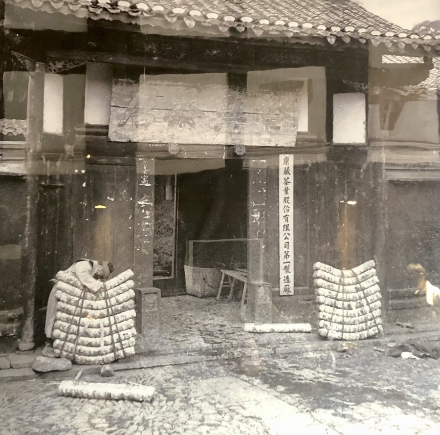 1939年,中國(guó)電影教育的開(kāi)創(chuàng)者之一、時(shí)任金陵大學(xué)教師的孫明經(jīng)對(duì)西康進(jìn)行了系統(tǒng)的考察,也為姜家大院留下了珍貴的影像資料。他拍攝到當(dāng)時(shí)姜家大院大門(mén)口的情景:“裕興茶店”的匾額下,掛著“康藏茶葉股份有限公司第一制造廠”的木牌,大門(mén)兩邊各放著一背茶包,均為九條,左邊有一位女背夫,正在打捆茶包,整個(gè)茶包預(yù)估有200斤,而在當(dāng)時(shí),男背夫所要背負(fù)的重量要達(dá)到300斤左右。