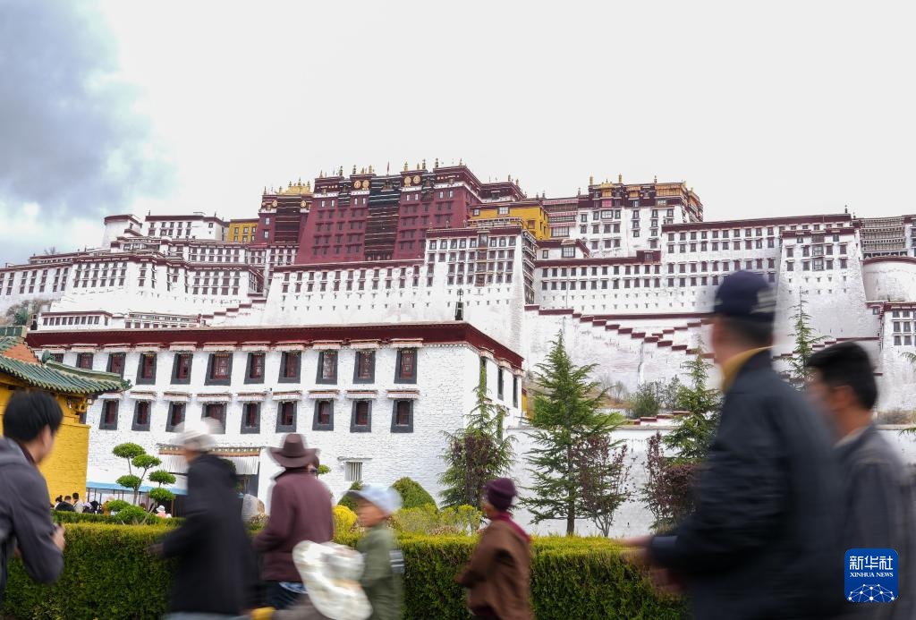 5月5日,游客在布達拉宮前參觀游玩。新華社記者 丁汀 攝