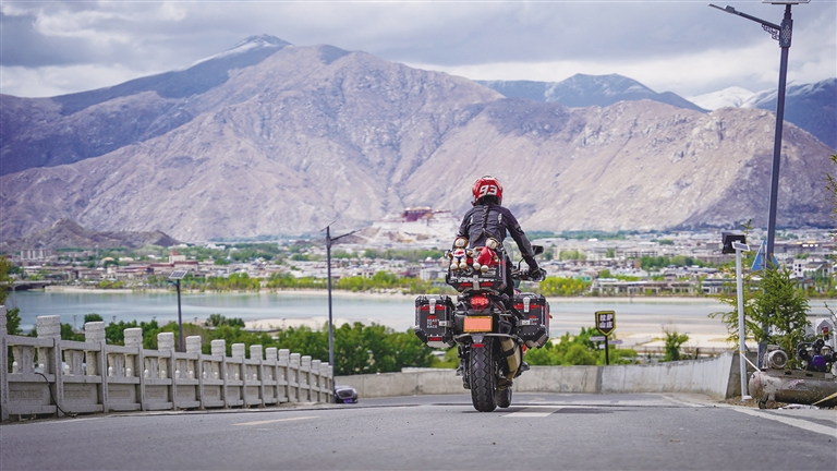 在現(xiàn)場,有的游客走在車前,用拖車?yán)K假裝拽著車子往坡上走;有的游客探出車子的天窗揮手;有的摩友駕駛自己的愛車擺出炫酷的姿勢……大家獨特的拍攝pose,只為留下自己與這座城市美好鏈接的重要時刻。“我們來自遼寧省大連市,這是我第一次來拉薩。這里山美、水美,人也熱情淳樸。”剛剛拍攝完的游客牛小雷說,“我是通過網(wǎng)絡(luò)平臺的推送了解到這個S彎的,今天來感受一下,感覺非常好!”