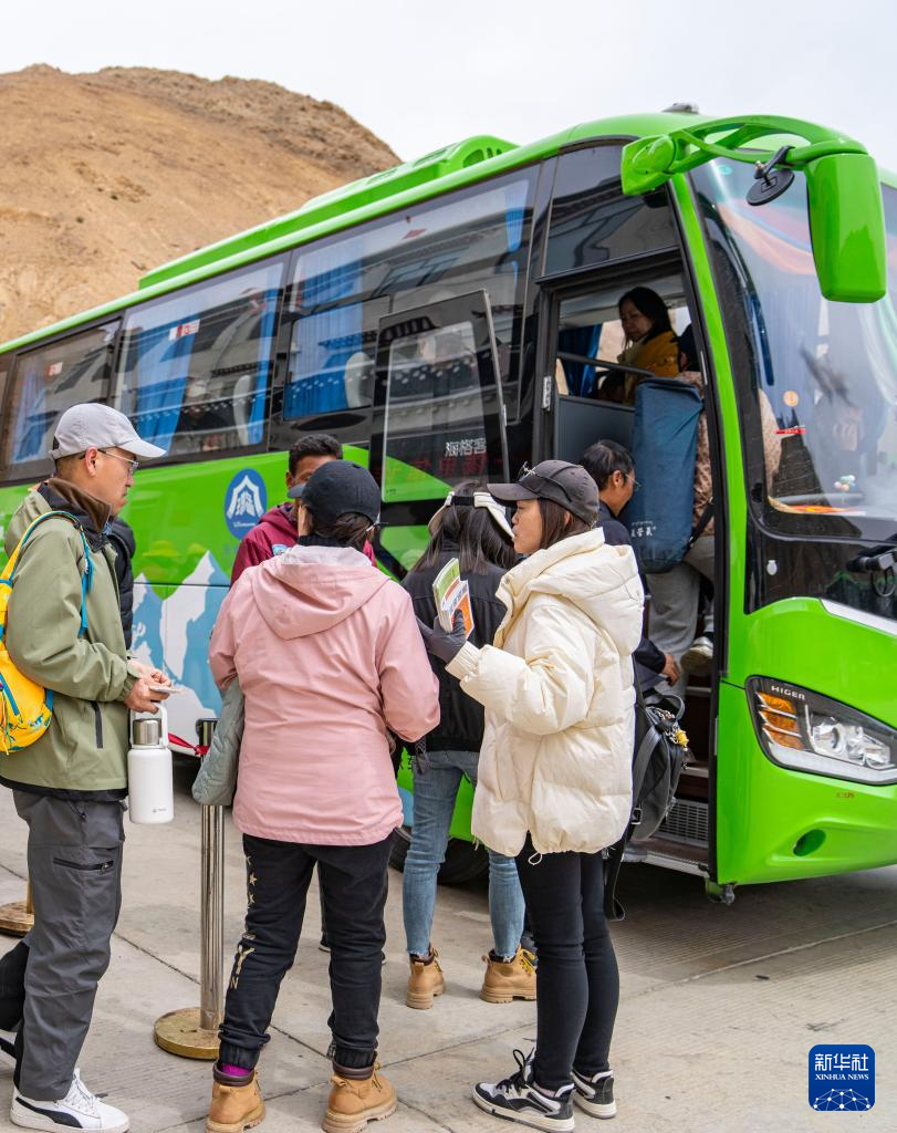 游客在珠穆朗瑪國(guó)家公園內(nèi)排隊(duì)換乘環(huán)保大巴車(chē)(5月20日攝)。新華社記者 孫非 攝