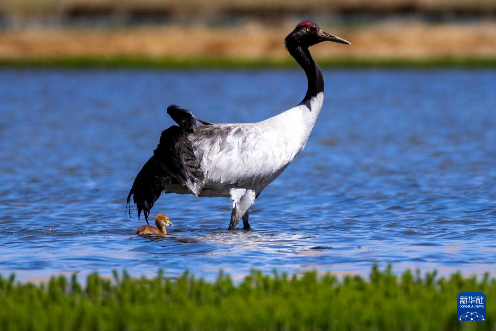 新華全媒+·神奇動(dòng)物在西藏|黑頸鶴家族又添新寶寶