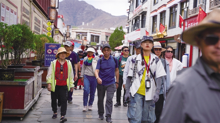 游客在魯固民族團(tuán)結(jié)社區(qū)參觀。記者 貢曲羅杰 攝