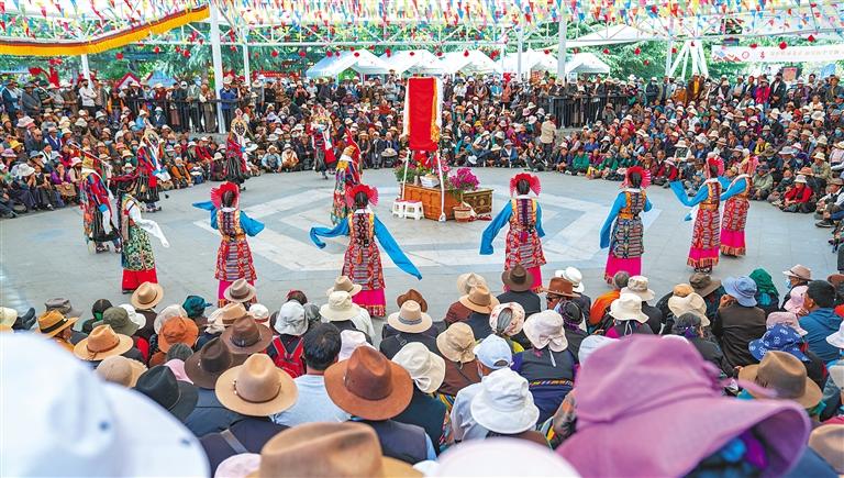 悠悠夏日,氣溫攀升,前往拉薩市宗角祿康公園消夏游玩成為不少市民和游客的選擇。6月9日,由拉薩市文化局主辦的2024年“藏戲演出季”活動在宗角祿康公園啟動?;顒訛槠?天,來自拉薩市各縣(區(qū))的5支民間藏戲團(tuán)隊將精彩呈現(xiàn)《朗薩雯蚌》《卓娃桑姆》等經(jīng)典傳統(tǒng)劇目。此外,活動現(xiàn)場搭建了購買非遺產(chǎn)品的優(yōu)質(zhì)平臺——拉薩非遺好物集市,對藏香、陶瓷、書法、酸奶、馬具、糌粑、服飾等非遺好物進(jìn)行了展銷。