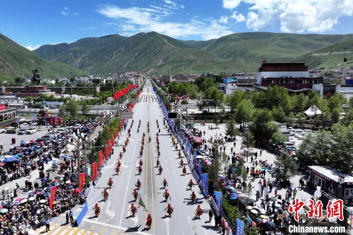 當日,來自玉樹州一市五縣的數千名康巴藏族兒女身著盛裝,載歌載舞,以行走巡演方式展示玉樹豐富多彩的非物質文化遺產。近兩小時的巡游,吸引了眾多省內外游客和當地各族群眾夾道觀賞。