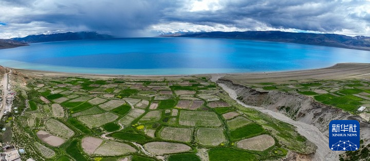 這是一家賓館民宿門前的當(dāng)惹雍錯夏季景色。新華社記者 姜帆 攝