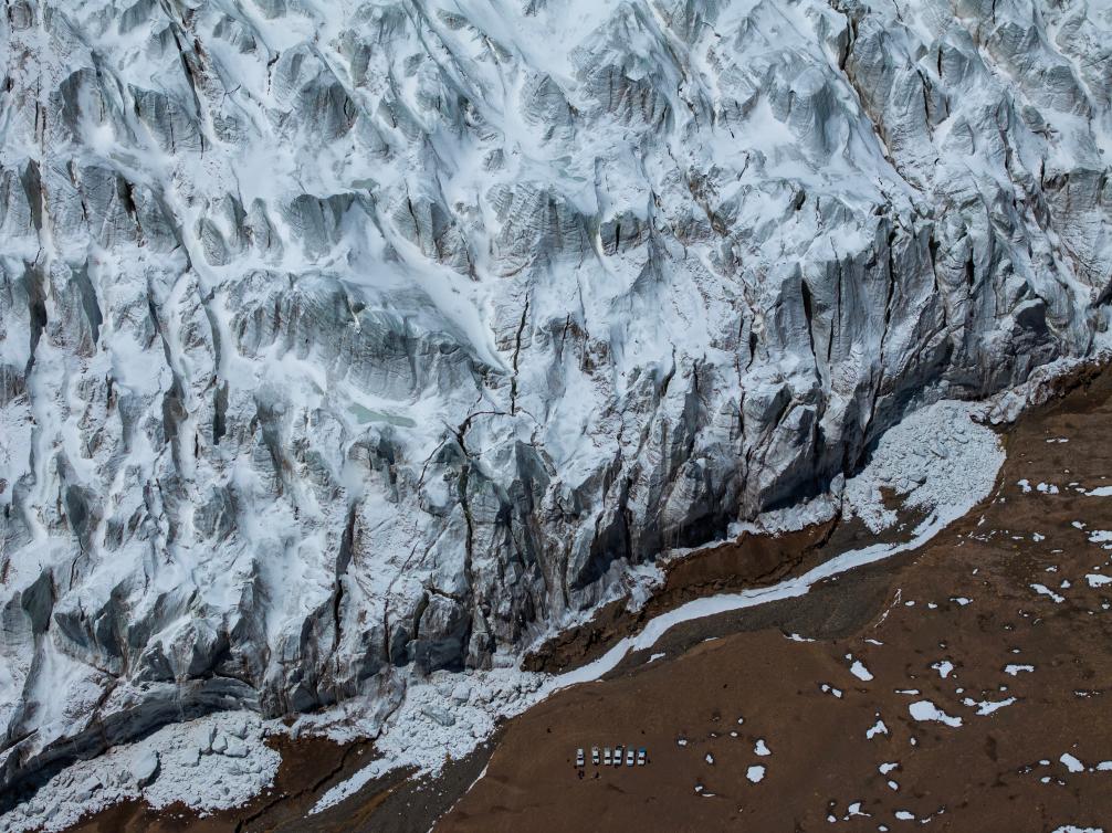 這是2024年5月在西藏自治區(qū)那曲市尼瑪縣拍攝的藏色崗日冰川(無(wú)人機(jī)照片)。新華社記者 姜帆 攝
