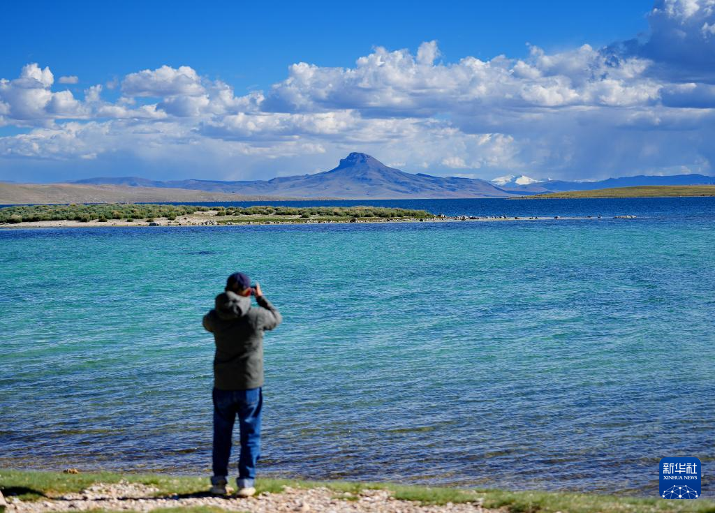 游客在錯鄂湖畔拍照(8月25日攝)。新華社記者 張汝鋒 攝 ??