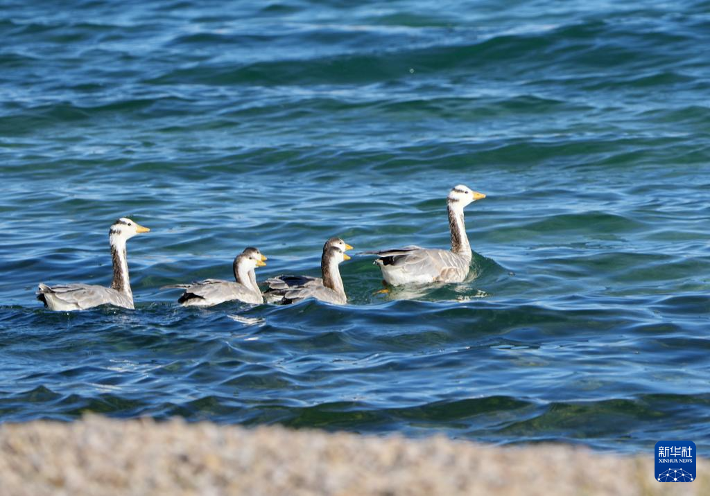斑頭雁在錯鄂湖里游弋(8月25日攝)。新華社記者 張汝鋒 攝