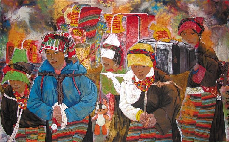 “藏族傳統(tǒng)文化不僅是中華民族文化的重要組成部分,也是世界文化的一角。將藏漢文化有機(jī)融為一體,是藝術(shù)家的歷史責(zé)任,也是藝術(shù)家取之不盡、用之不竭的永恒題材?!蔽鞑孛佬g(shù)家協(xié)會(huì)理事、二級(jí)美術(shù)師、西藏美術(shù)館展陳部主任周明暉說(shuō)。