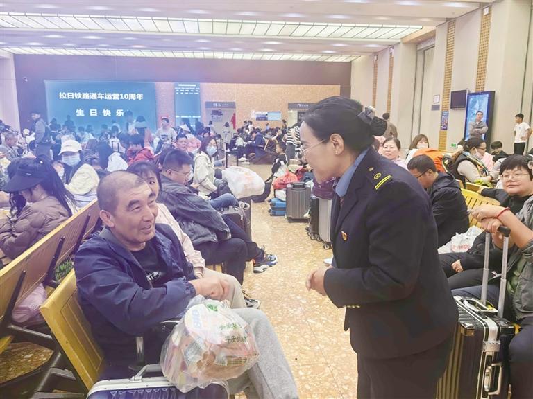 暑運期間,青藏集團公司深入開展客運提質專項行動,各大車站深化構建以“天路格?;ā睘楹诵牡能囌酒放萍?,形成了涵蓋問詢、訂票、接送、特殊重點服務等各環(huán)節(jié)的服務鏈,有效提高了品牌影響力。落實站車餐飲供水、衛(wèi)生保潔、空調制冷等基本服務措施,加強老幼病殘孕等重點旅客愛心服務,做好12306在線選鋪、學生優(yōu)惠票等客運新規(guī)的宣傳普及工作,提升旅客出行體驗。暑運期間,青藏集團公司同步做好糧食等國計民生重點物資的運輸組織工作,發(fā)揮“智慧天路”統(tǒng)一指揮、統(tǒng)一調度的優(yōu)勢,為重點物資開辟“綠色通道”,確保重點物資快速送達,服務人民群眾生產生活,共計發(fā)送貨物395萬噸。