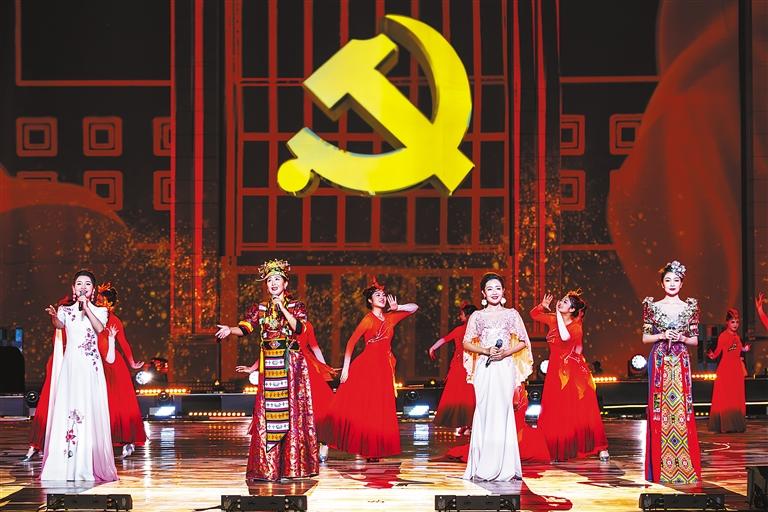 湖南、湖北、安徽三省和中糧集團對口支援山南以來,一批又一批援藏干部人才把山南當(dāng)作第二故鄉(xiāng),與各族人民結(jié)下了跨越山海的深情厚誼。短片《只為你唱的歌》,展示援藏工作者背后的故事和家屬日常生活中的酸甜苦辣。情境合唱《追風(fēng)趕月的人》,是一場為所有援藏工作者精心設(shè)計的特別演出,他們的家屬共同帶來了一首溫情之歌,送出了家屬們對援藏工作者的堅定支持和無盡的愛。女子群舞《格桑芙蓉并蒂開》,展現(xiàn)了湖南、山南兩地人民心手相牽的美好畫面?!俺礁杞o黨聽,我把黨來比母親……”山南市三小格桑花合唱團孩子們的聲音直抵人心,隨后湖南、湖北、安徽和山南的歌手們共同唱響《唱支山歌給黨聽》。