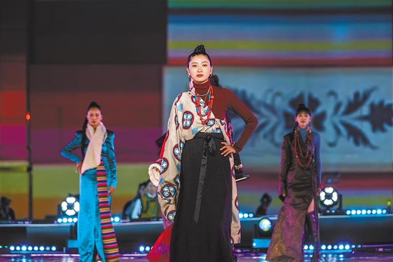 服裝秀表演《天上的羊卓雍措》在晚會中驚艷亮相。系列服飾完美融合了藏族傳統(tǒng)服飾元素與當(dāng)代時尚潮流,是由湖南省援藏工作隊株洲工作組的成員們以扎囊縣氆氌為原料創(chuàng)作而成。開幕式總導(dǎo)演李詞岳說:“為了更好地展現(xiàn)舞臺效果,我們團隊克服高原反應(yīng),專門前往羊卓雍措拍攝服裝秀相關(guān)素材,希望通過這次服裝秀讓更多人了解山南、走進山南?!?/p>