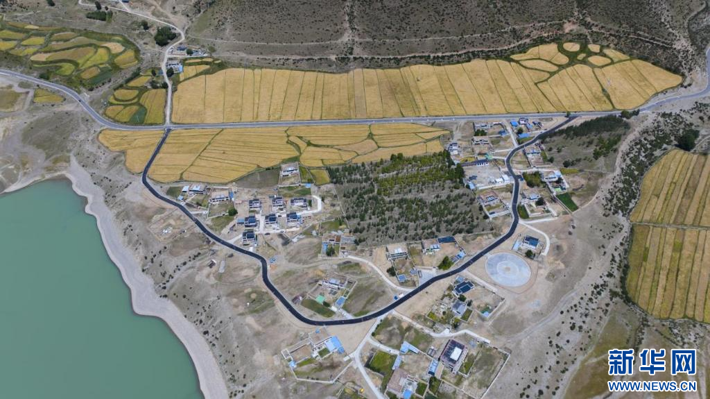9月4日, 宜居宜業(yè)和美鄉(xiāng)村建設(shè)項(xiàng)目實(shí)施后的墨竹工卡縣尼瑪江熱鄉(xiāng)幫達(dá)村面貌 ( 無(wú)人機(jī)照片 )。 新華網(wǎng)發(fā) 洛克 攝