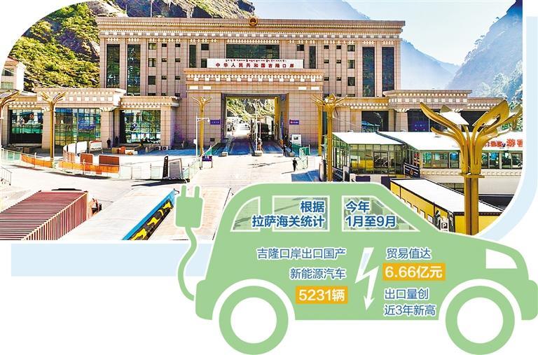 在位于日喀則市的吉隆口岸,裝載著一輛輛國產(chǎn)新能源汽車的大卡車正緩緩駛出國門,駛向尼泊爾。今年以來,新能源汽車出口形勢良好,貿(mào)易值屢創(chuàng)新高,成為西藏外貿(mào)新的增長點(diǎn)。根據(jù)拉薩海關(guān)統(tǒng)計,今年1月至9月,吉隆口岸出口國產(chǎn)新能源汽車5231輛,貿(mào)易值達(dá)6.66億元,出口量創(chuàng)近3年新高。
